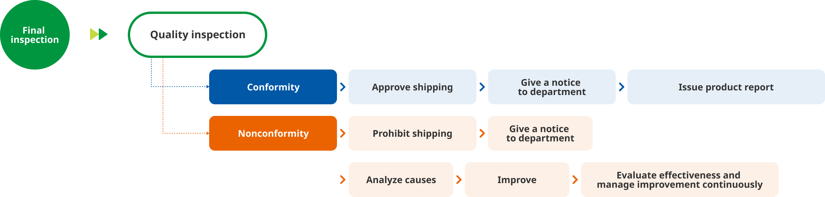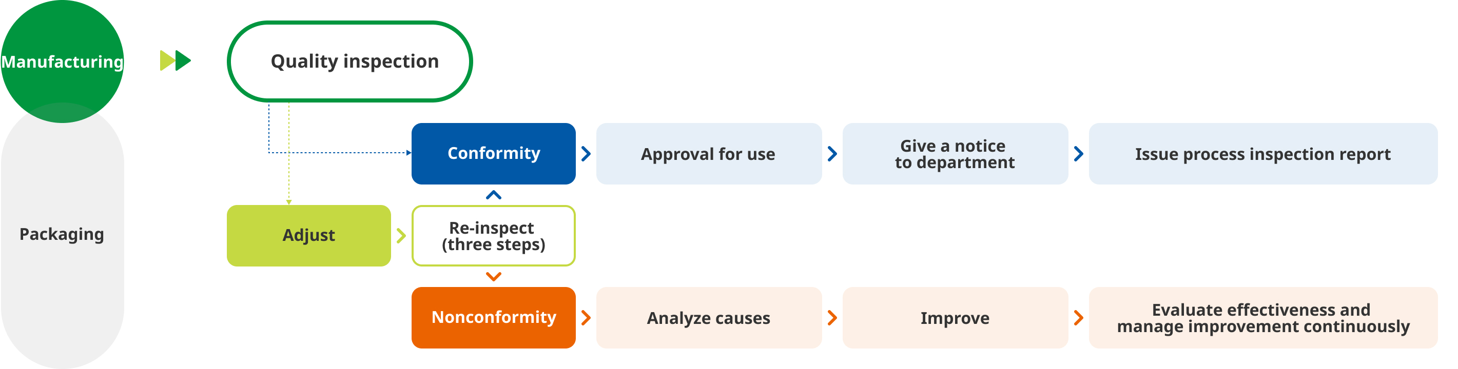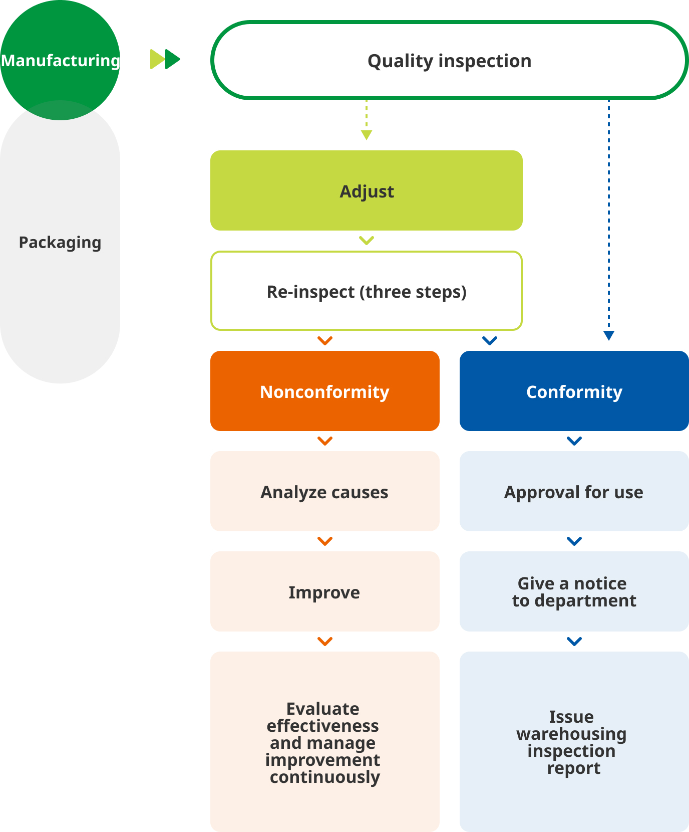 The domestic HACCAP certificate and the global food safety system (FSSC22000 V5) certificate are secured; the quality stability of all-processes from warehousing of raw & sub materials to shipping is approved.